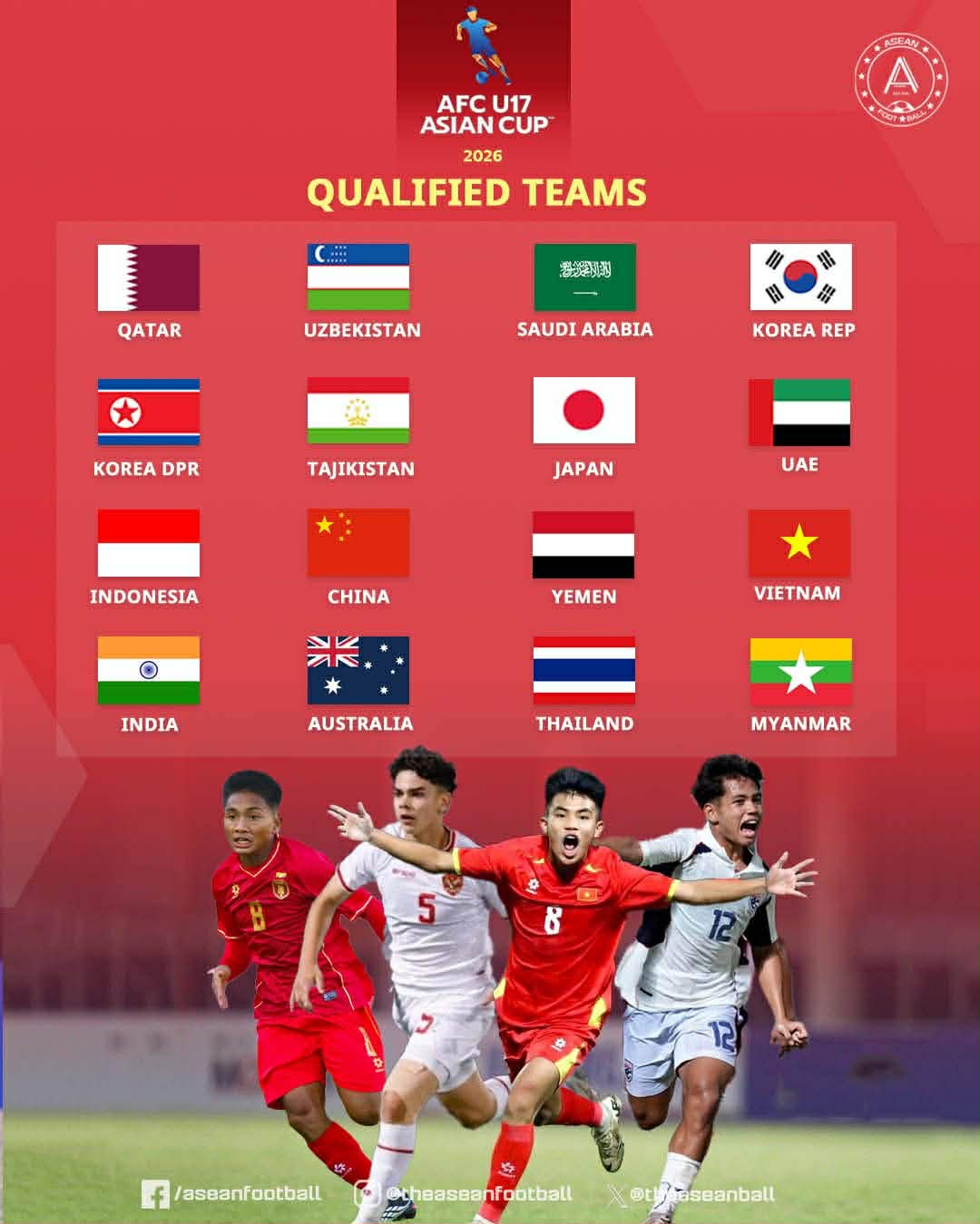 Trước đó đã có 6 đội tuyển của Việt Nam vượt qua vòng loại để ghi tên ở Vòng chung kết châu Á 2026, gồm: U23 Việt Nam; Tuyển futsal nam; U17 nữ Việt Nam; U20 nữ Việt Nam; Đội tuyển nữ quốc gia; Đội tuyển futsal nữ Việt Nam.