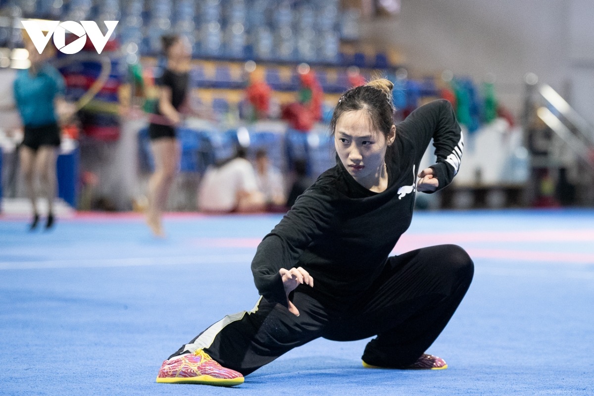 Không bị áp chỉ tiêu nhưng các VĐV của đội tuyển wushu Việt Nam vẫn nỗ lực hết mình nhằm giành kết quả tốt.