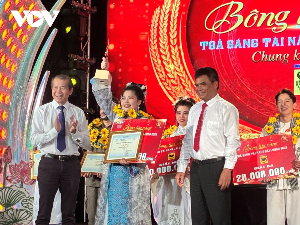 Chiều 27/12, vòng chung kết xếp hạng cuộc thi “Bông Lúa Vàng 2025 - Tỏa sáng tài năng cải lương” đã chính thức khép lại, vinh danh những gương mặt trẻ xuất sắc của sân khấu cải lương Nam Bộ. Ngôi vị Quán quân năm nay được trao cho thí sinh Nguyễn Thị Hồng Toán, đến từ An Giang.