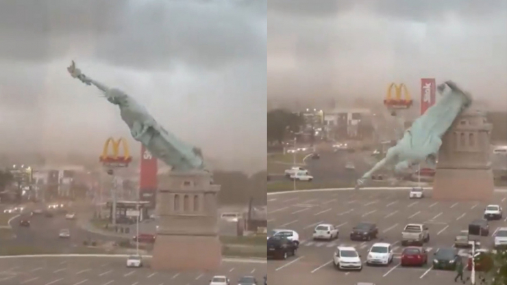 Vào khoảng 15h ngày 15/12 (giờ địa phương), một cơn bão mạnh kèm gió giật lên tới 88 km/h đã quật đổ bản sao tượng Nữ thần Tự do cao khoảng 24 mét tại thành phố Gúaiba, bang Rio Grande do Sul, miền Nam Brazil. Sự cố không gây ra bất kỳ thương vong nào.