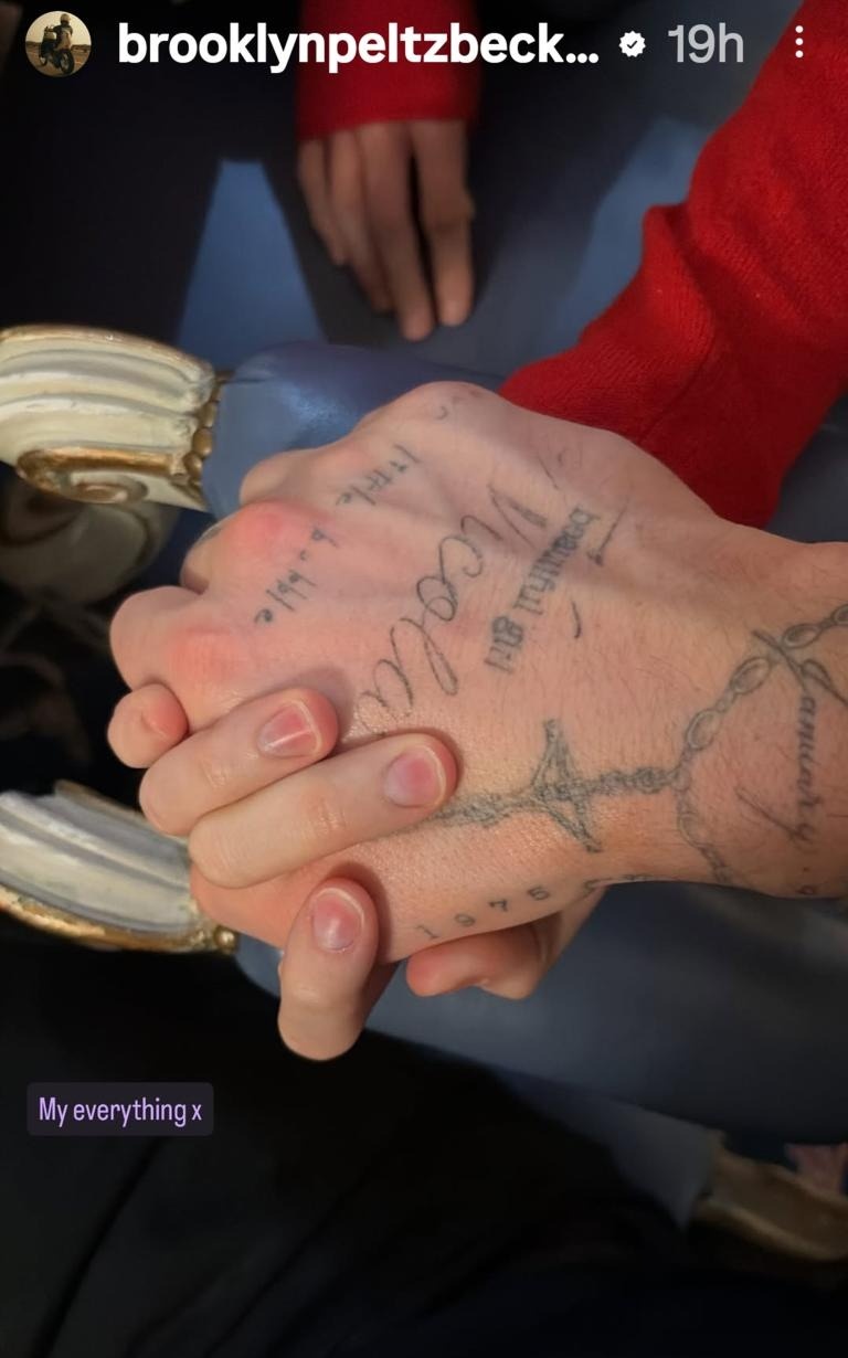 Ngoài ra, Brooklyn cũng đăng tải khoảnh khắc nắm tay vợ trong đêm Giáng sinh kèm chia sẻ: "Em là tất cả của anh".