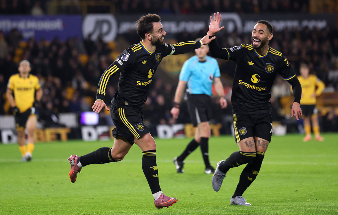 Phút 25, dù Cunha chuyền sửa lưng trong vòng cấm nhưng Bruno Fernandes vẫn nỗ lực quay người dứt điểm mở tỷ số cho MU