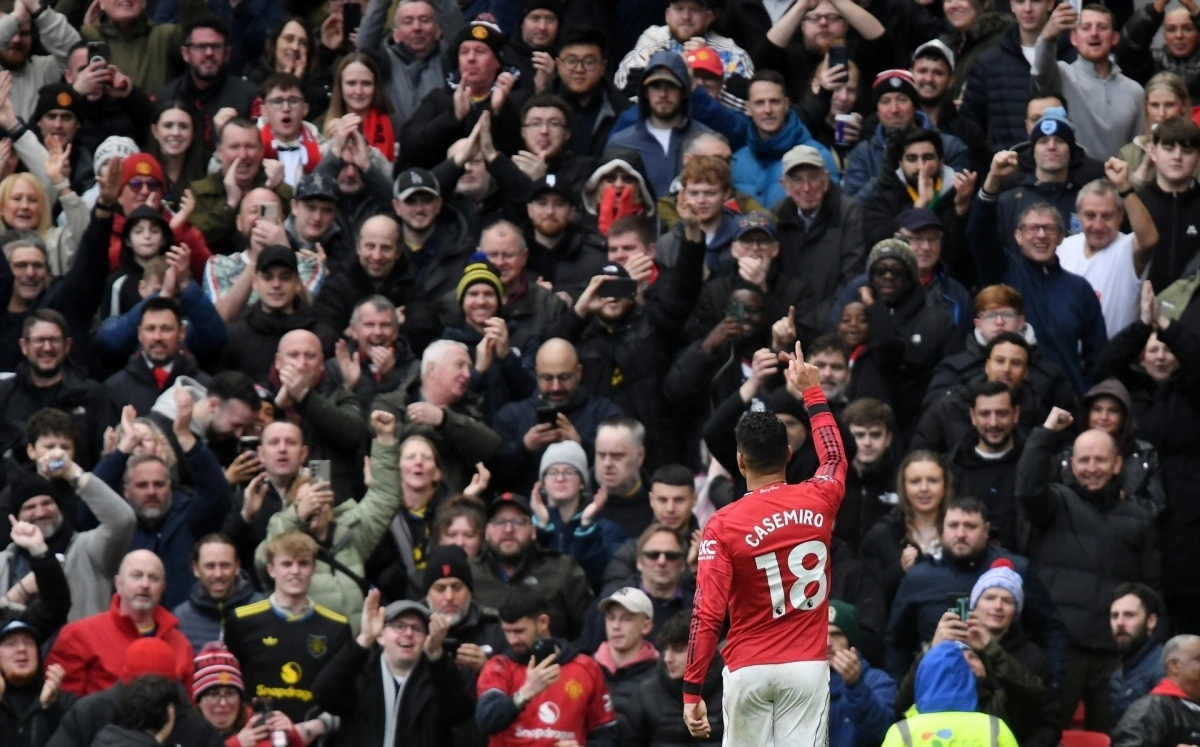 Người hâm mộ Man Utd chung vui với Casemiro sau bàn thắng mở tỷ số. Ảnh: Reuters