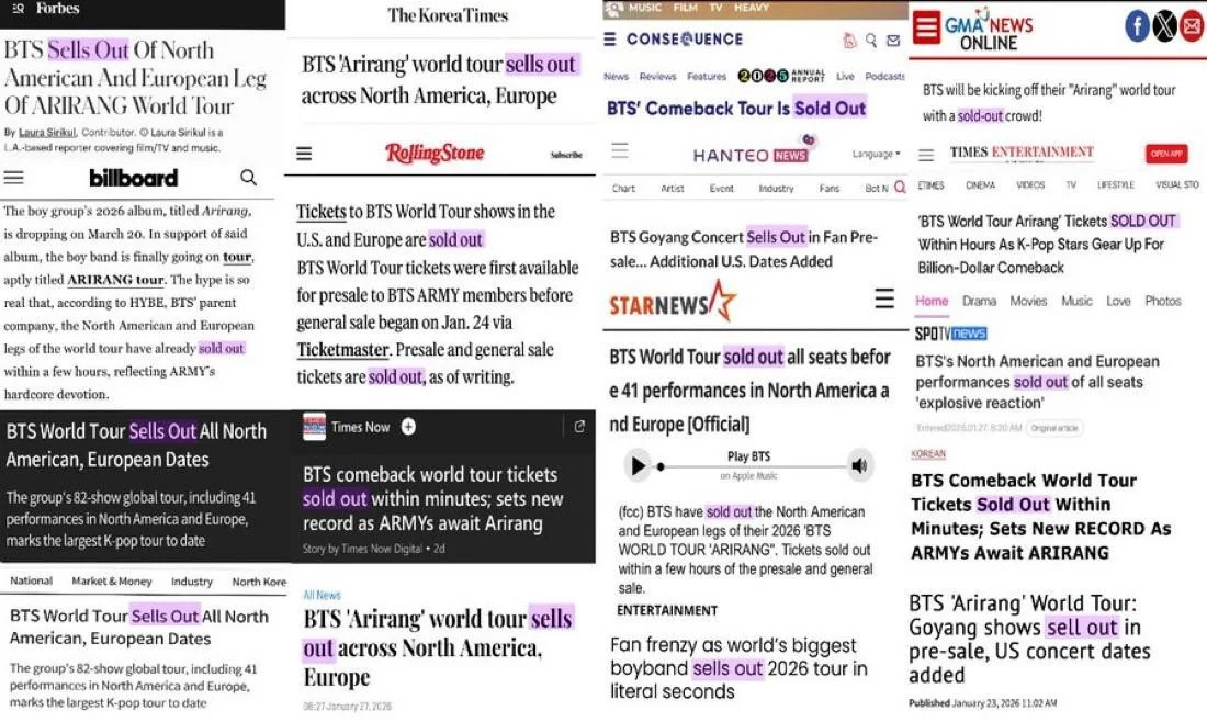 Với 79 đêm diễn ở 23 quốc gia và vùng lãnh thổ, BTS đang sở hữu quy mô tour "khủng" nhất trong số tất cả các nghệ sĩ K-Pop tính đến thời điểm hiện tại. Tuy nhiên, con số này rất có thể vẫn chưa ngừng lại với nhiều địa điểm sẽ được bổ sung trong năm 2027.