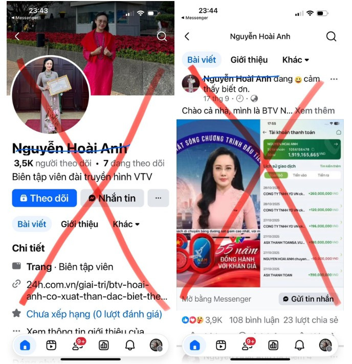 Mới đây, trên trang cá nhân, BTV Hoài Anh chia sẻ về việc bị nhiều tài khoản giả mạo hình ảnh để đi lừa đảo. Những trang giả mạo này đặt tên giống cô và đăng lại gần như toàn bộ hình ảnh, bài viết của nữ BTV trên trang chính chủ.