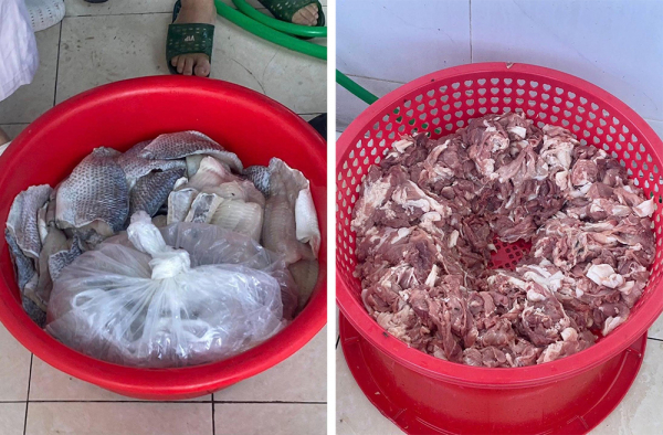 Cá thịt ươn tại bếp ăn Trường Tiểu học Chu Minh, xã Quảng Oai, Hà Nội