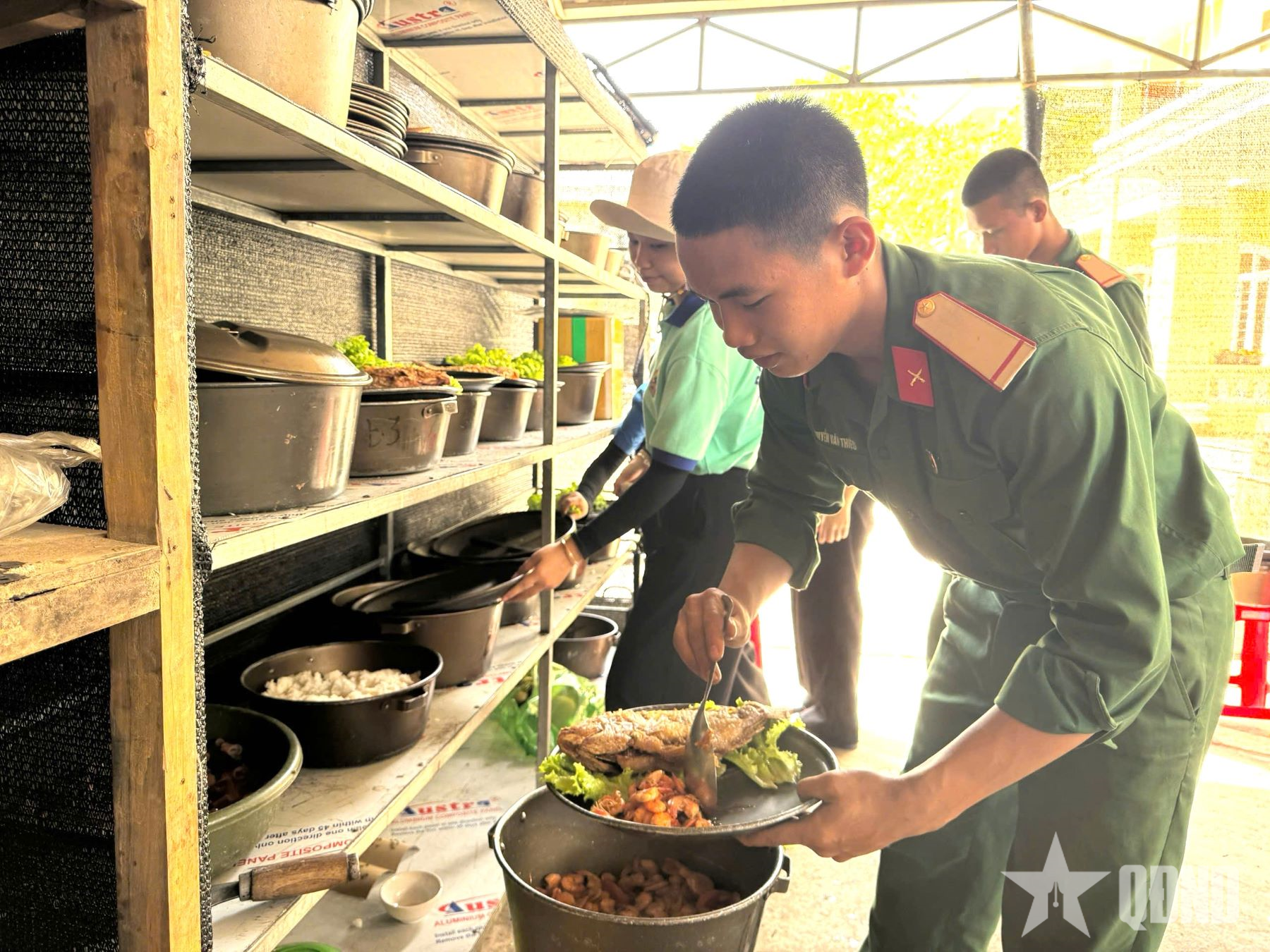 Để có được bữa cơm ấm áp nghĩa tình, Hội Phụ nữ cùng cán bộ, đoàn viên, thanh niên địa phương đã chuẩn bị thực phẩm và cùng với cán bộ, chiến sĩ Trung đoàn 38, Sư đoàn 2 nấu nướng. Những món ăn tuy giản dị nhưng chan chứa tình cảm, thể hiện sự quan tâm, sẻ chia sâu sắc của cấp ủy, chính quyền và các đoàn thể địa phương đối với lực lượng vũ trang đang ngày đêm vì nhân dân quên mình.