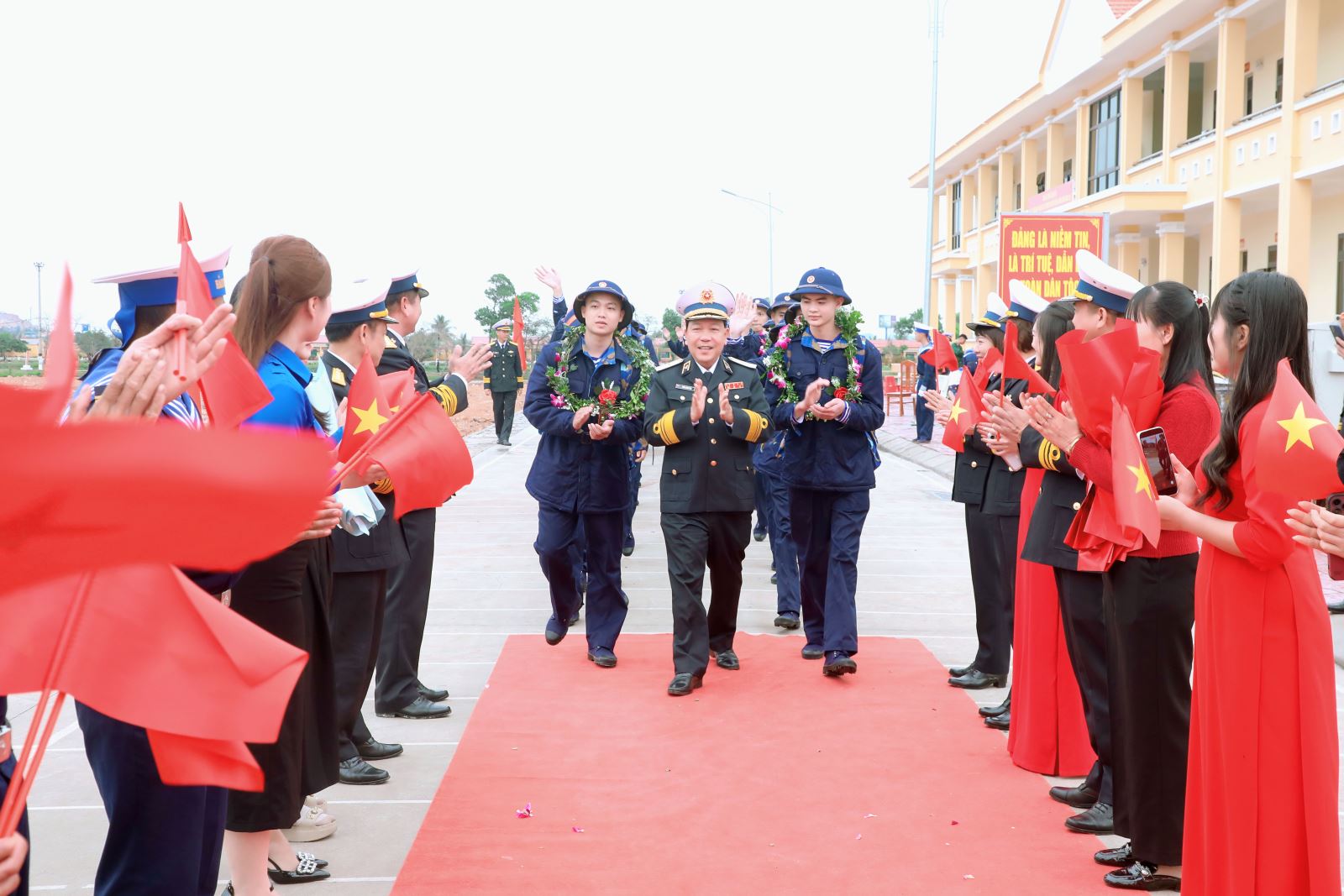 Chuẩn Đô đốc Trần Xuân Văn, Bí thư Đảng ủy, Chính ủy Vùng 1 đón các chiến sĩ mới.