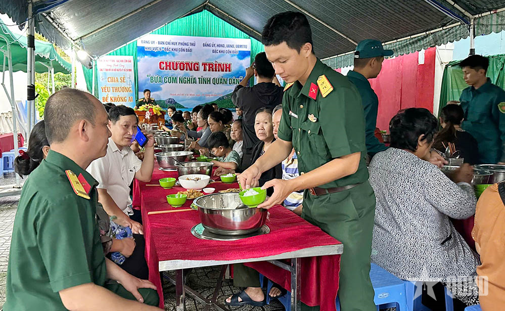 Cán bộ, chiến sĩ Ban chỉ huy Phòng thủ khu vực 6 – Đặc khu Côn Đảo cùng ăn cơm với nhân dân.