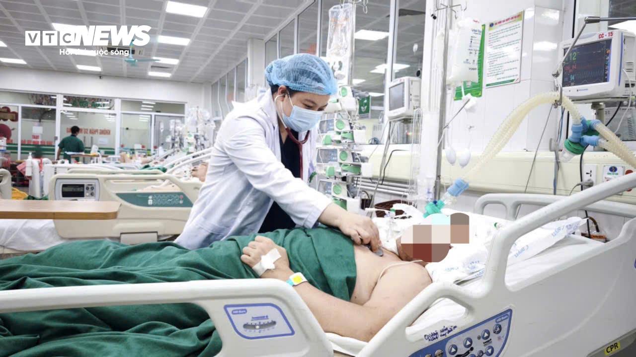 Bác sĩ cấp cứu kiểm tra liên tục tình trạng bệnh nhân.