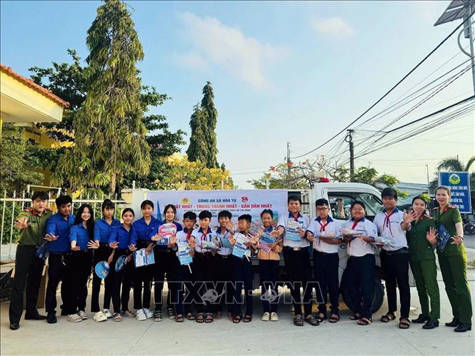 Chi đoàn Công an xã Hòa Tú phối hợp cùng Chi đoàn Viện Kiểm sát khu vực 8 tổ chức Chương trình “Bánh mì, nước suối 0 đồng”. Ảnh: TTXVN phát