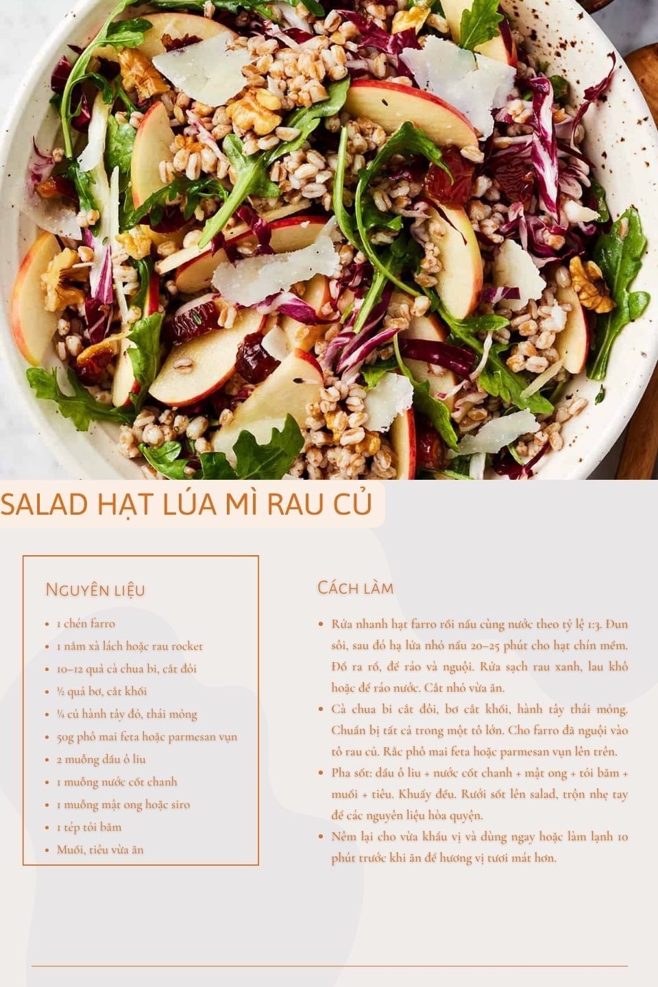Dù là người thích sự đơn giản hay thích khám phá, Farro salad luôn có phiên bản phù hợp. Chỉ cần chọn nguyên liệu tươi, trộn đúng tay và cân bằng vị, món ăn sẽ mang đến sự hài lòng cho thực khách từ cái nhìn đầu tiên đến những miếng cuối cùng.