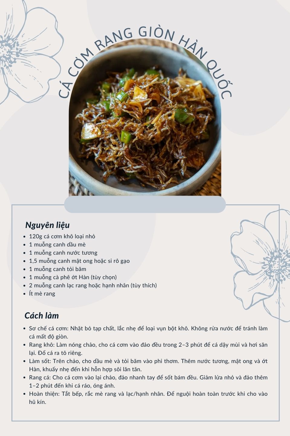 Hương vị, cách chế biến nhanh gọn và tính ứng dụng đa dạng khiến món cá cơm rang trở nên gần gũi không chỉ với người Hàn mà cả thực khách quốc tế. Một món ăn nhỏ nhưng chứa đựng nhiều tinh tế, từ khâu chọn nguyên liệu đến kỹ thuật đảo cá và nêm nếm để tạo nên hương vị vừa thân thuộc vừa thú vị cho bữa trưa quốc tế.