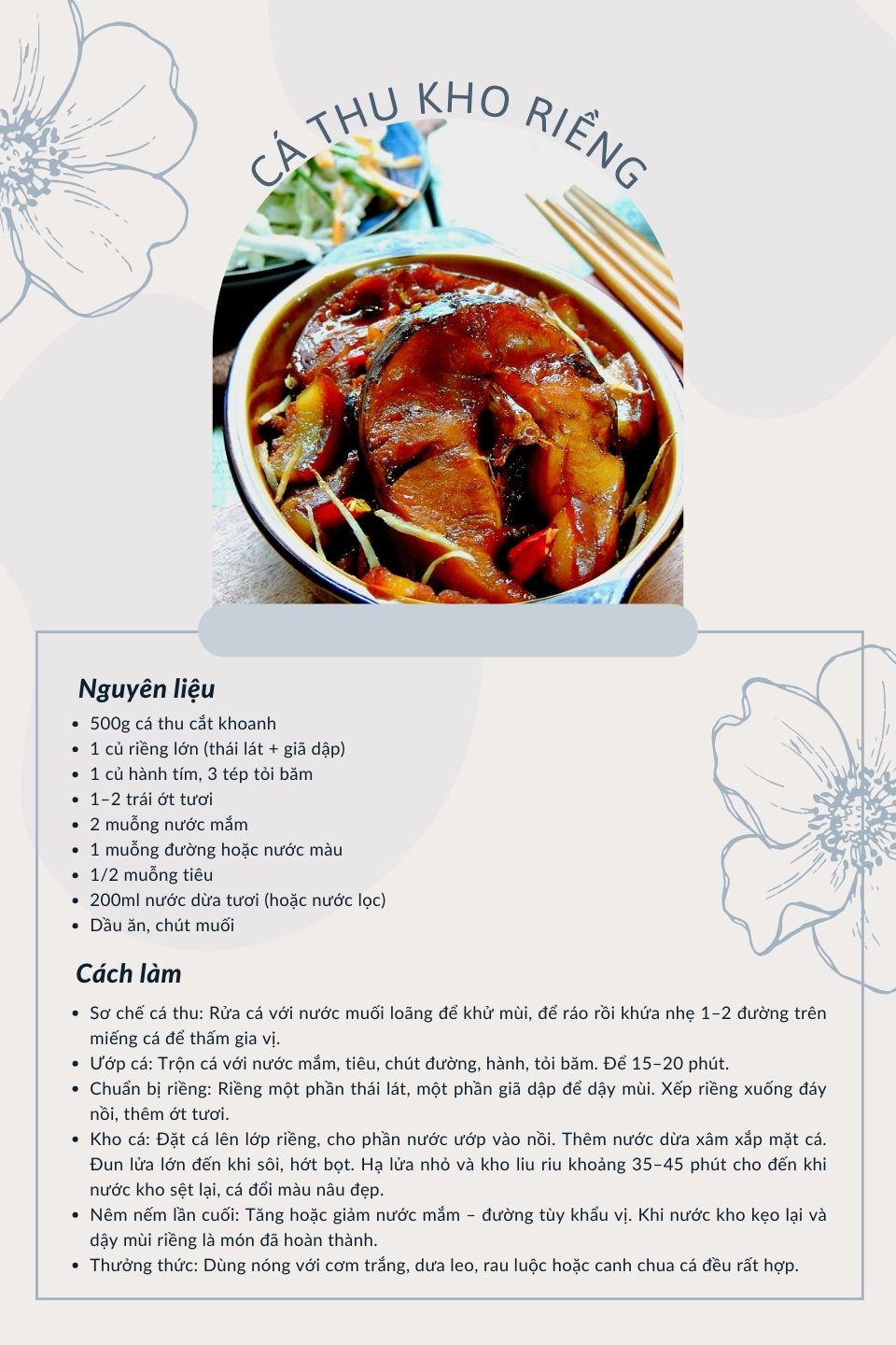 Đây cũng là món hợp cho các bữa cơm văn phòng nhờ tính tiện lợi: dễ hâm nóng, không bị giảm hương vị sau khi để nguội và ăn cùng dưa leo hoặc rau luộc đều ngon. Trong nhiều gia đình, cá thu kho riềng còn được xem là món “chống ngán” hiệu quả giữa tuần, thay đổi khẩu vị nhưng vẫn giữ nét mộc mạc quen thuộc của ẩm thực Việt.