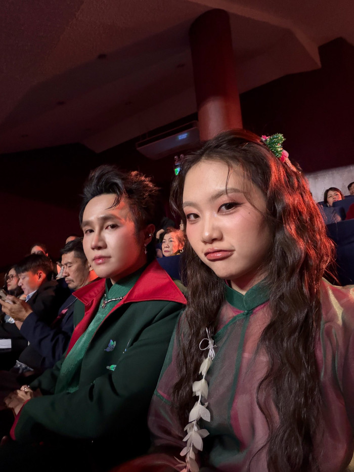 Trong bức ảnh, Phương Mỹ Chi chọn trang phục trẻ trung, mái tóc được tô điểm bằng phụ kiện nổi bật. Huỳnh Lập cũng xuất hiện với diện mạo chỉn chu, phù hợp không khí trang trọng của sự kiện. Phương Mỹ Chi nghiêng người ôm lấy nam diễn viên, trong khi cả hai nở nụ cười hướng về sân khấu.