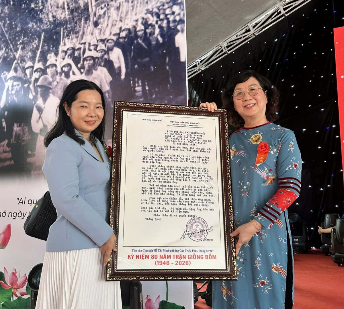 Tại buổi lễ, lãnh đạo tỉnh Bạc Liêu đã trao lại bức thư này cho gia đình cụ Cao Triều Phát. Khoảnh khắc ấy không chỉ mang ý nghĩa tri ân mà còn là sự kết nối thiêng liêng giữa quá khứ và hiện tại.