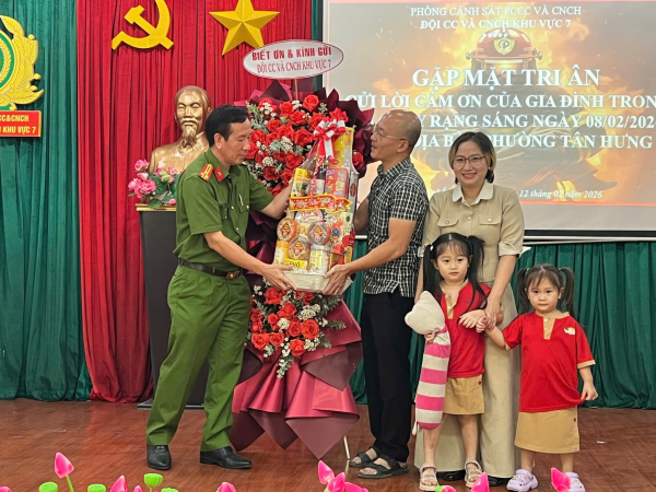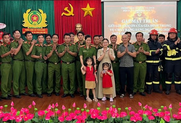 Trong thư cảm ơn được trao tận tay CBCS, chị Lê Phương Thảo, đại diện gia đình, xúc động viết: “Khi đám cháy xảy ra, chúng em thật hoảng sợ, hai đứa con còn quá nhỏ, chúng em chỉ biết ôm con và cầu mong phép màu xuất hiện. Trong thời khắc hoảng loạn và tuyệt vọng, hình ảnh các anh quả cảm, tận tâm là tia hy vọng, là hình ảnh mà gia đình chúng em sẽ mang theo suốt cả cuộc đời…