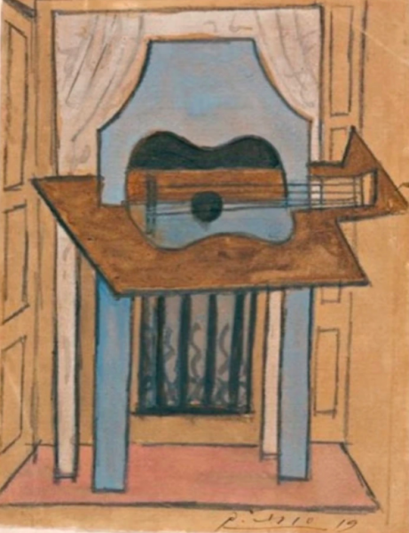 Cận cảnh bức tranh "Tĩnh vật với đàn guitar" của danh họa Picasso bị mất tích. Ảnh: El Pais.