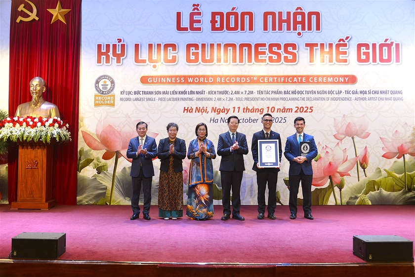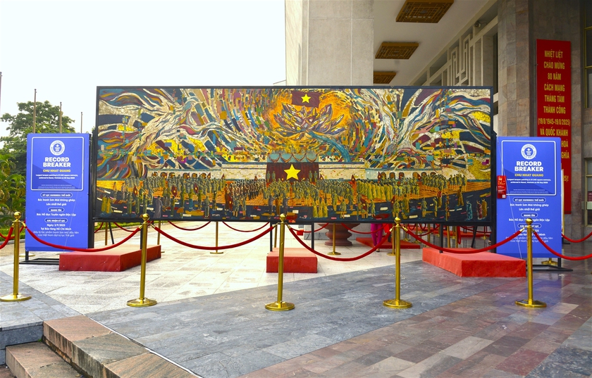 Trước đó, ngày 3/9/2025, tại Bảo tàng Hồ Chí Minh, Tổ chức Kỷ lục Guinness thế giới đã tiến hành kiểm định và xác lập kỷ lục cho tác phẩm tranh sơn mài khổ lớn, không ghép này.