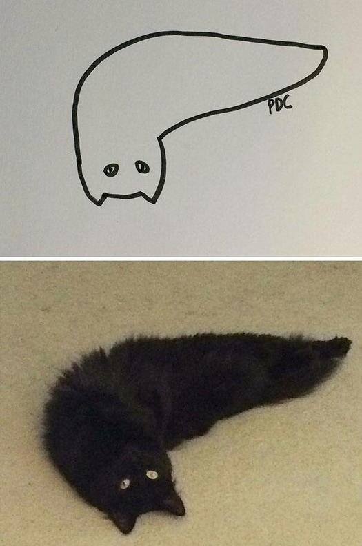 Bà mẹ kể lại: “Con tôi về nhà khóc nức nở, nói rằng cô bảo con không biết vẽ. Tôi nhìn bức tranh thì thấy đúng là hình mèo hơi lạ thật, thân dài ngoằng, chân tay không rõ, đuôi cụt sang một bên. Nhưng tôi biết đó chính là dáng nằm quen thuộc của con mèo nhà tôi.”