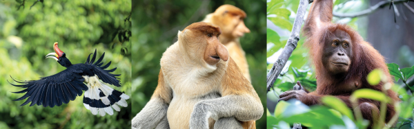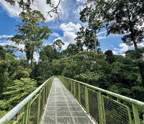 Xây dựng các cây cầu treo vắt vẻo, dài thượt, miên man xuyên qua các tán rừng ủ trong mây mù ở độ cao vài chục mét so với mặt rừng rậm rạp. Du khách trả tiền (phí khá cao), rồi qua các cánh cổng có khóa được bảo vệ nghiêm ngặt, họ đi trên mây, ngang tầm mắt với các ngọn cây, tán rừng, rồi chim, thú, bò sát lưỡng cư hiện ra. Toàn loài quý hiếm, nhiều loài rực màu, sinh động hiện ra, cả đười ươi Borneo đang sống tuyệt đối hoang dã với các cánh rừng rộng lớn. Đười ươi và nhiều loài thú, chim nơi này, toàn các “báu vật thiên nhiên” không thấy trong tự nhiên ở bất cứ đâu trên thế giới, tức là loài đặc hữu của xứ đảo lớn thứ 3 thế giới Borneo. Ngọn núi Kinabalu của bang này, là nóc nhà của toàn cõi Đông Nam Á (ASEAN), cao 4.095m so với mực nước biển.