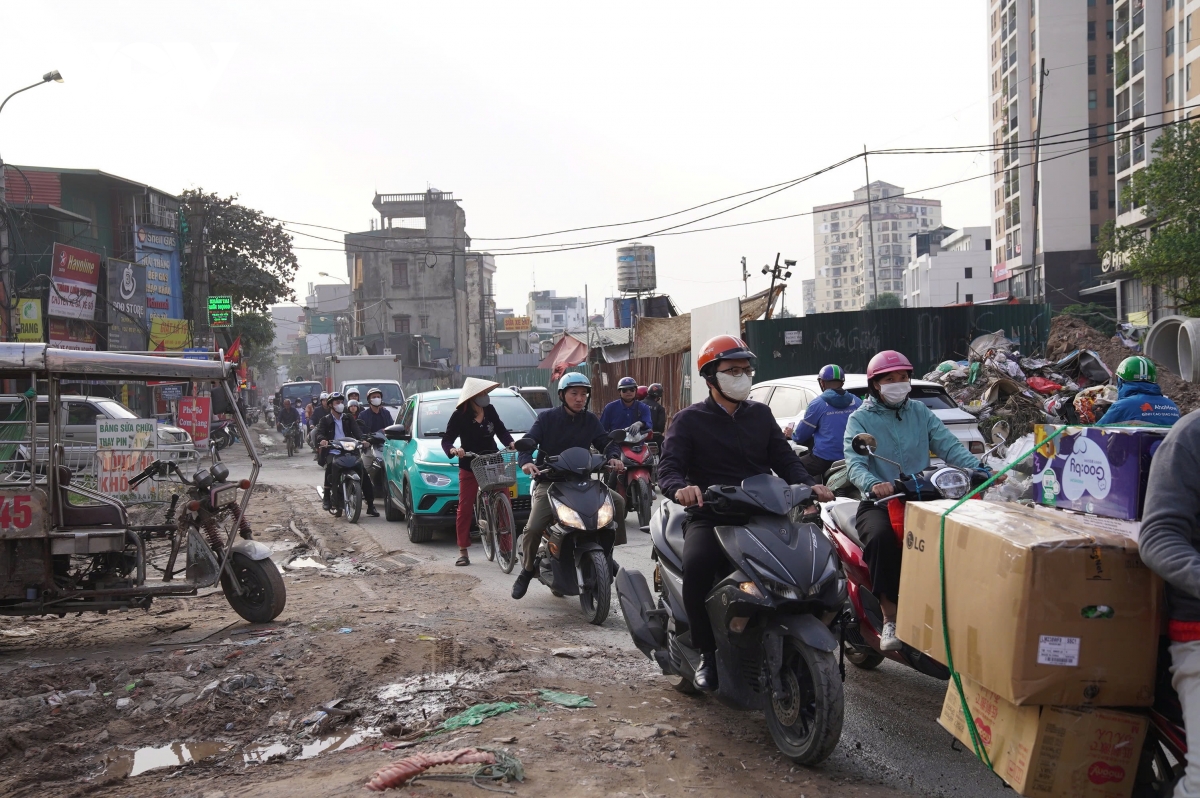 Tương tự tuyến đường Vành đai 2,5 đoạn Đầm Hồng - Giải Phóng, bụi mù mịt khắp khu dân cư lân cận. Nhà dân nằm sát công trình phải đóng kín toàn bộ cửa sổ và cửa ra vào để hạn chế bụi lọt vào.