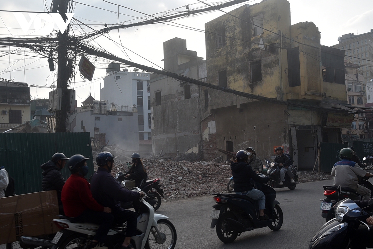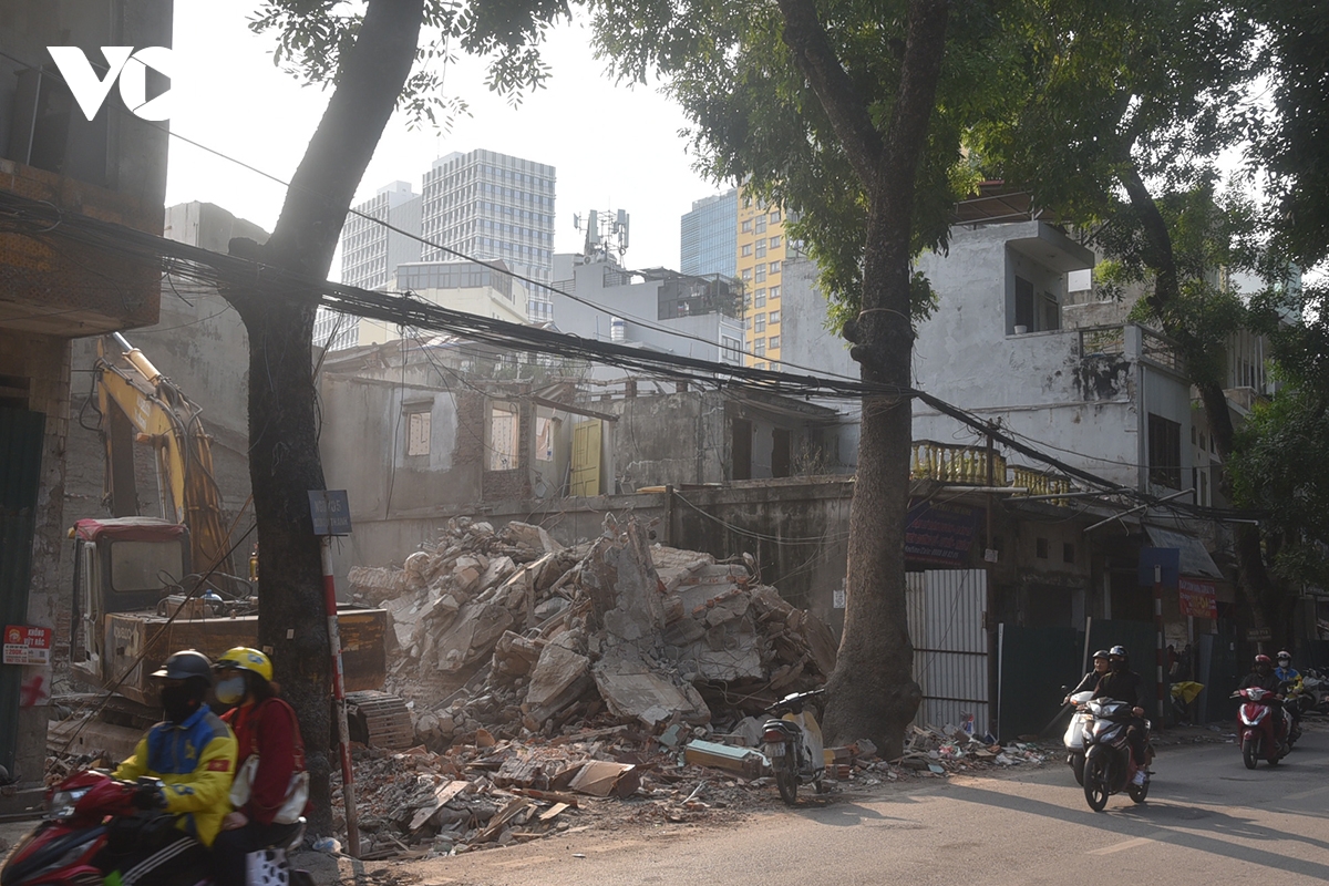 Công trình bị phá dỡ, nhiều chỗ chỉ có vách tôn che chắn bụi không đủ điều kiện.