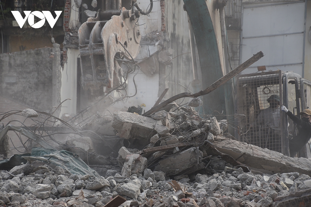 Bụi mù mịt thoát ra từ các công trình đang tháo dỡ.