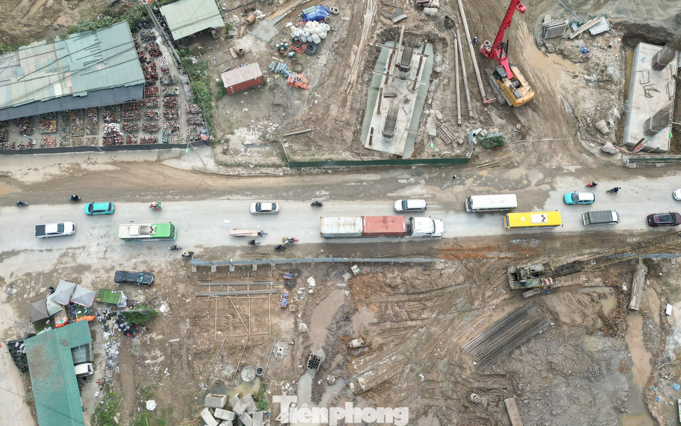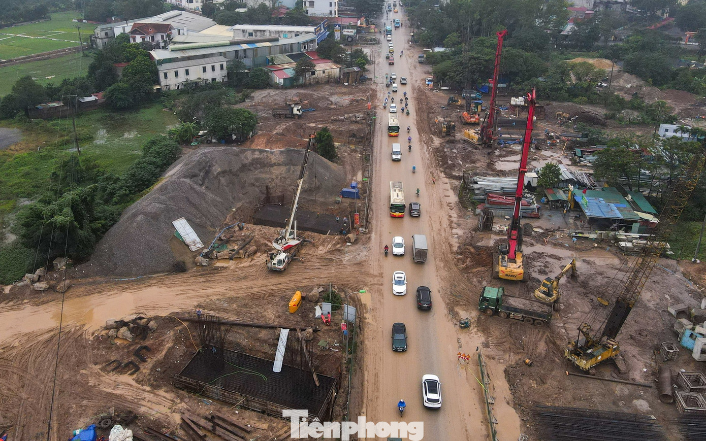Khu vực mù mịt nằm trên đoạn QL6, tại vị trí giao với dự án đường Vành đai 4 – Vùng Thủ đô đang thi công.