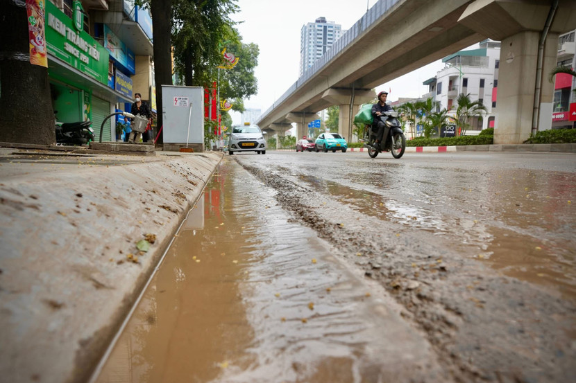Thực tế, xe chở đất rời khỏi công trình thì sạch, tuy nhiên, do cầu rửa không đảm bảo lượng nước, nên sau nhiều chuyến bỗng như "vũng trâu đầm". Bùn nhầy nhụa cuốn theo bánh xe trải dài trên đường.