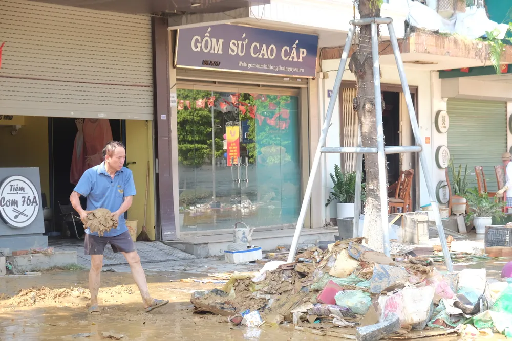Nếu như trong những ngày mưa lớn, người dân Thái Nguyên phải chạy lũ, bị cô lập, thì những ngày sau đó, khi nước rút dần, một cuộc chiến khác lại bắt đầu - cuộc chiến với bùn đất, rác thải ngổn ngang.