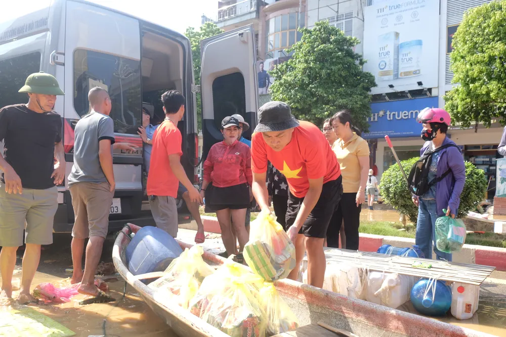 Sơn, sinh viên 21 tuổi, quê gốc ở Thái Nguyên, chia sẻ: "Vì trận lũ này mà hàng nghìn người từ khắp nơi đã đổ về tỉnh này để tham gia cứu trợ. Là một người con của chính nơi đây, lại trẻ khỏe, tôi không thể không tham gia". Hai ngày qua, Sơn dầm mình dưới dòng nước có khi ngập quá đầu mình, để mang những hộp cơm đến với bà con...