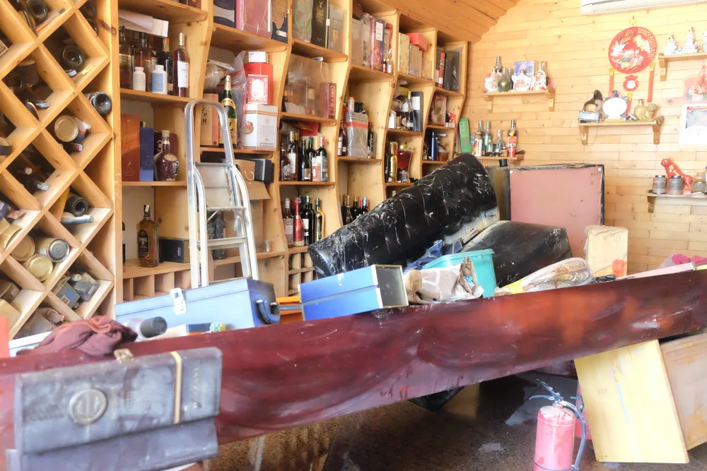 Phía trước căn nhà, những chiếc ghế gỗ còn nguyên, chờ được lau rửa, phơi khô.