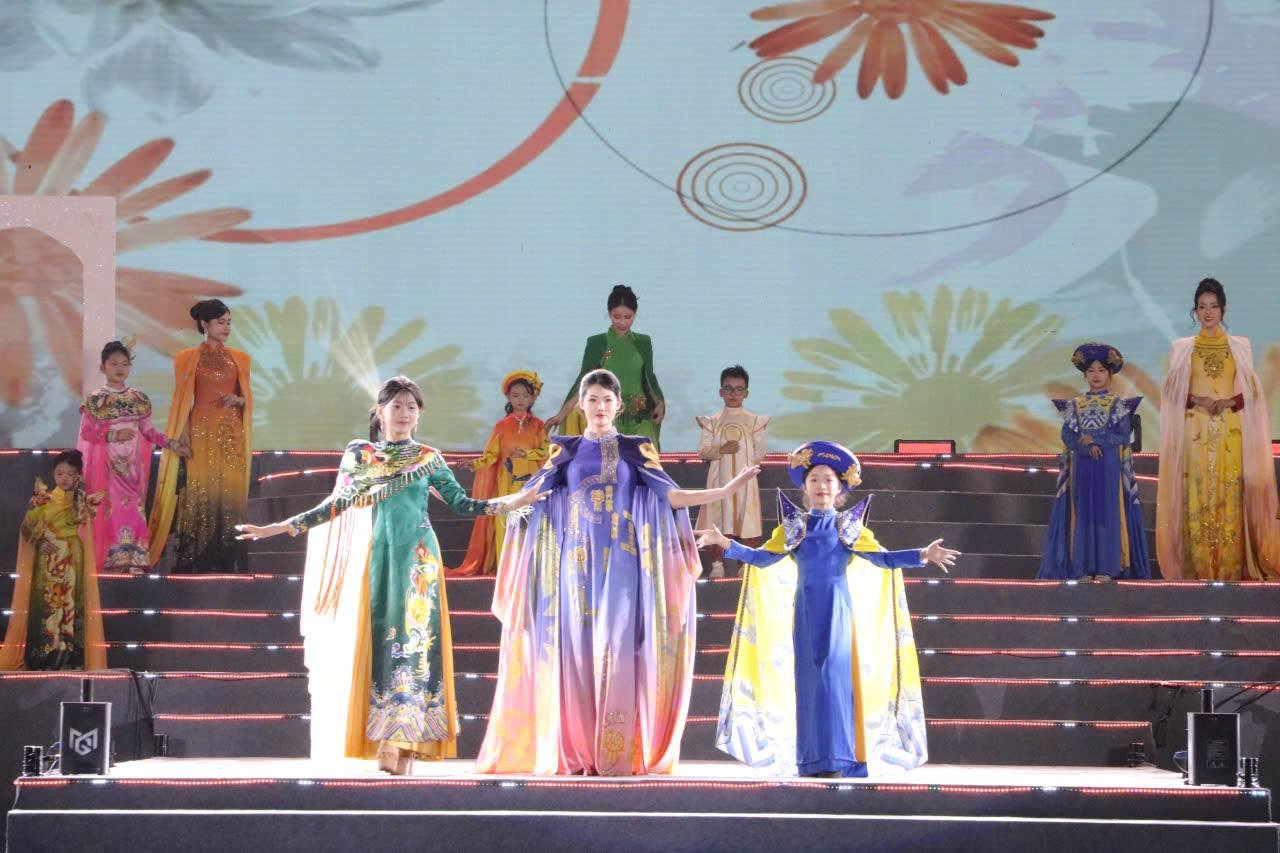 Phần trình diễn áo dài trong chương trình tạo điểm nhấn giao thoa hài hòa giữa văn hóa ngàn năm và hơi thở đương đại.