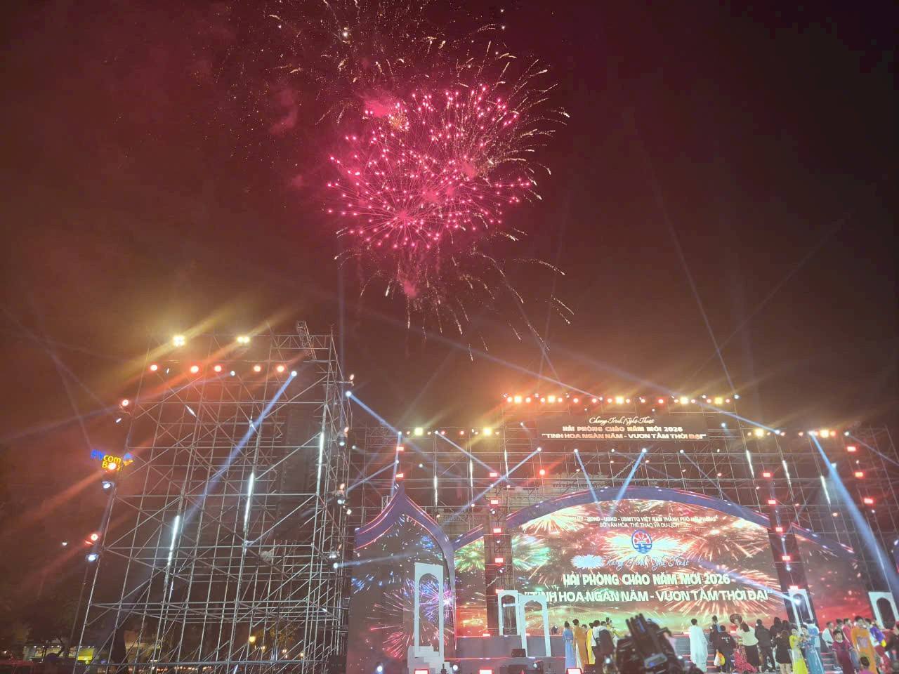 Khoảnh khắc được mong chờ nhất của countdown chào năm mới 2026 là pháo hoa tầm cao rực rỡ, bên cạnh hiệu ứng ánh sáng hiện đại cùng màn trình diễn nghệ thuật đặc biệt khiến cho không khí sự kiện được đẩy lên cao trào, tạo nên đêm nhạc hội rực rỡ, bùng nổ cảm xúc, mãn nhãn đối với người xem.
