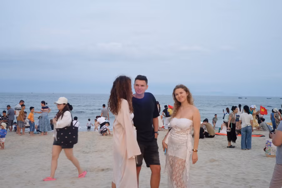 Du khách quốc tế tham quan và trải nghiệm mùa du lịch biển Đà Nẵng.