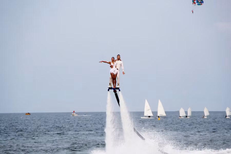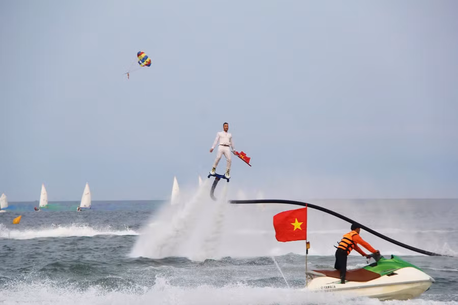Du khách có thể trải nghiệm lướt sóng, chèo sup, mô tô nước, dù bay…
