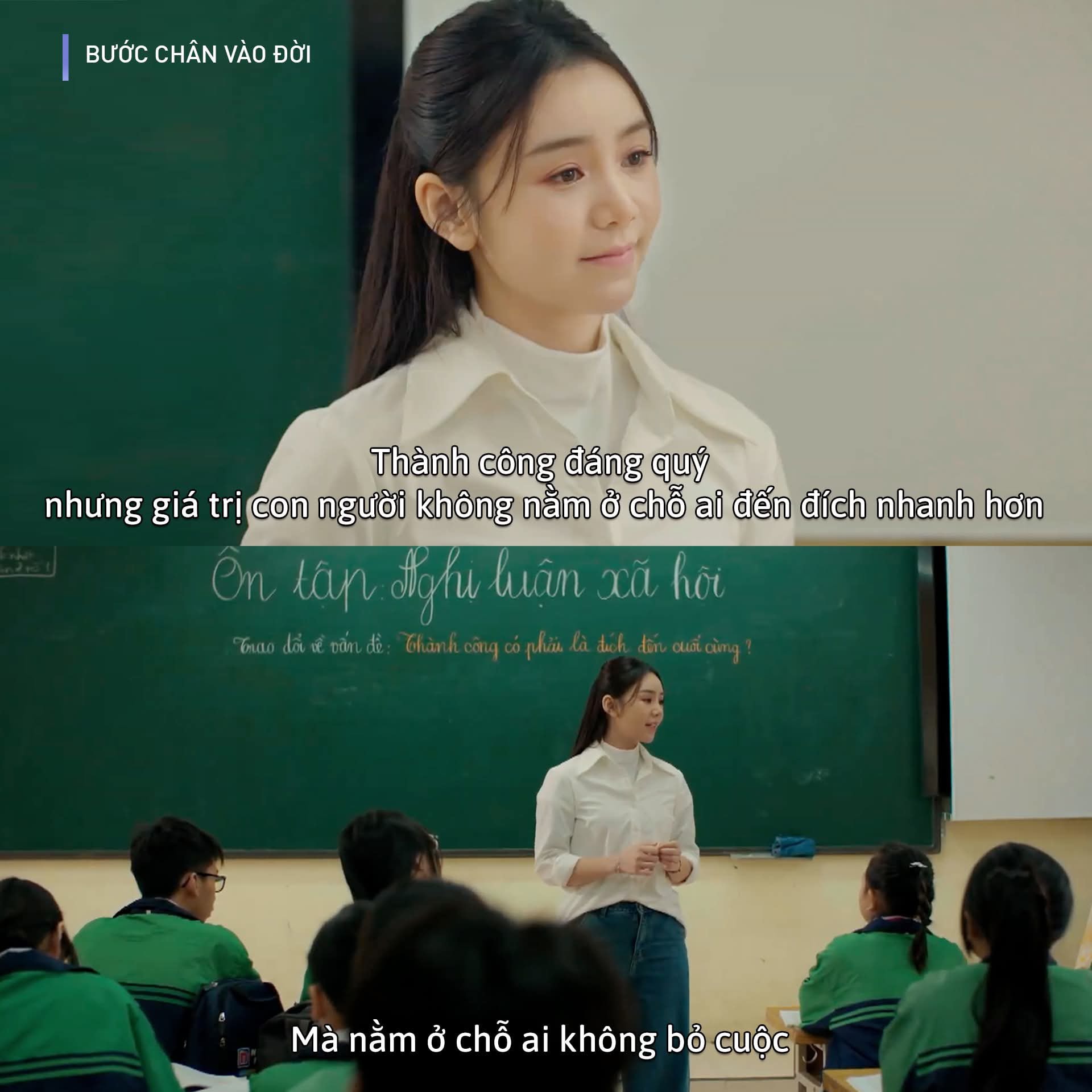 Mở đầu tập phim là tiết dạy Văn của cô giáo Thương. Thay vì phương pháp đọc chép truyền thống, Thương khuyến khích học sinh thảo luận và tự do bày tỏ quan điểm cá nhân. Cô nhấn mạnh triết lý: thành công không nằm ở tốc độ đến đích mà ở sự kiên trì, không bỏ cuộc. Tuy nhiên, tư duy đổi mới này lại gặp phải sự phản đối từ đồng nghiệp là cô Ngân, người đã báo cáo sai lệch với hiệu trưởng rằng Thương tranh cãi tay đôi với học trò.
