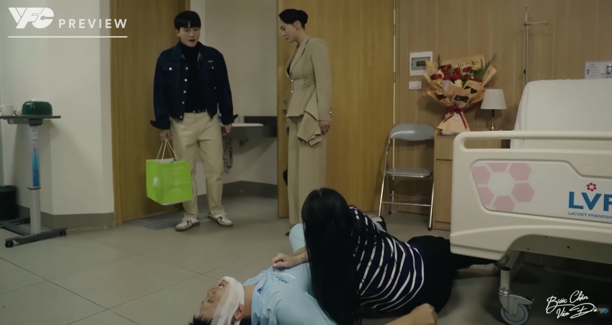 Tình huống bất ngờ khiến Thương vô cùng lúng túng. Cô vội vàng đỡ Lâm đứng dậy và lập tức xin lỗi Quân vì cảnh tượng dễ gây hiểu lầm. Tuy nhiên, điều khiến Thương càng thêm ngượng ngùng là phải đối diện với mẹ của Quân trong hoàn cảnh không mấy dễ chịu.