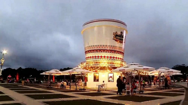 Mô hình ly cà phê và hạt cà phê của Công ty TNHH TNI King Coffee cao 12m, đường kính 7m được trưng bày từ ngày 2/1/2026 tại Quảng trường Lâm Viên Đà Lạt phục vụ lễ hội “Di sản cà phê toàn cầu 2025”.