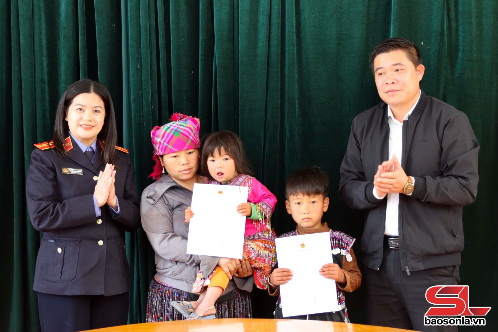 Thông qua thực hành quyền công tố và kiểm sát giải quyết vụ án hình sự về ma túy, Kiểm sát viên Tòng Thanh Quỳnh, Viện KSND khu vực 1 đã phát hiện bà Vàng Thị Nhứ, sinh năm 1980, chung sống như vợ chồng cùng với ông Giàng A Dạng, sinh năm 1986, tại bản Giạng Phổng, xã Ngọc Chiến. Hiện nay, Nhứ và Dạng đều bị bắt, tạm giam về hành vi phạm tội mua bán trái phép chất ma túy. 2 người có con chung là cháu Giàng A Xuân, sinh năm 2018 và cháu Giàng Thị Thu Hiền, sinh năm 2022. Tuy nhiên, cả 2 cháu chưa được làm giấy khai sinh theo quy định, ảnh hưởng đến quyền, lợi ích hợp pháp của trẻ em, đặc biệt là các quyền nhân thân, không đủ điều kiện nhập học, không được cấp thẻ bảo hiểm y tế.