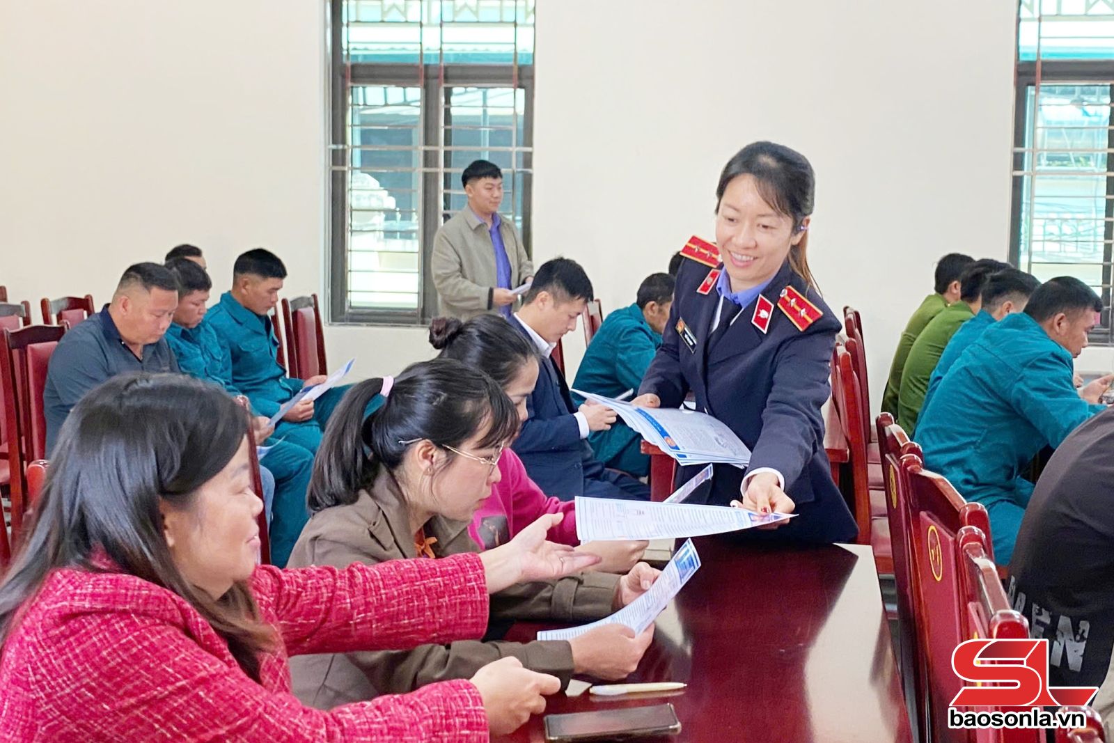 Phát tờ rơi tuyên truyền về Nghị quyết 205/2025/QH15 tại phường Chiềng Cơi.