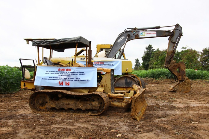 Máy móc thực hiện nghi thức khởi động dự án NƠXH xã Phước An ngày 27-9