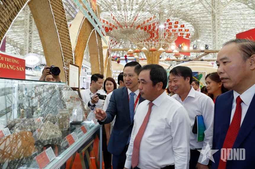 Lãnh đạo Bộ Nông nghiệp và Môi trường tham quan gian trưng bày các sản phẩm của ngành địa chất và khoáng sản Việt Nam tại Trung tâm Hội chợ triển lãm Việt Nam.