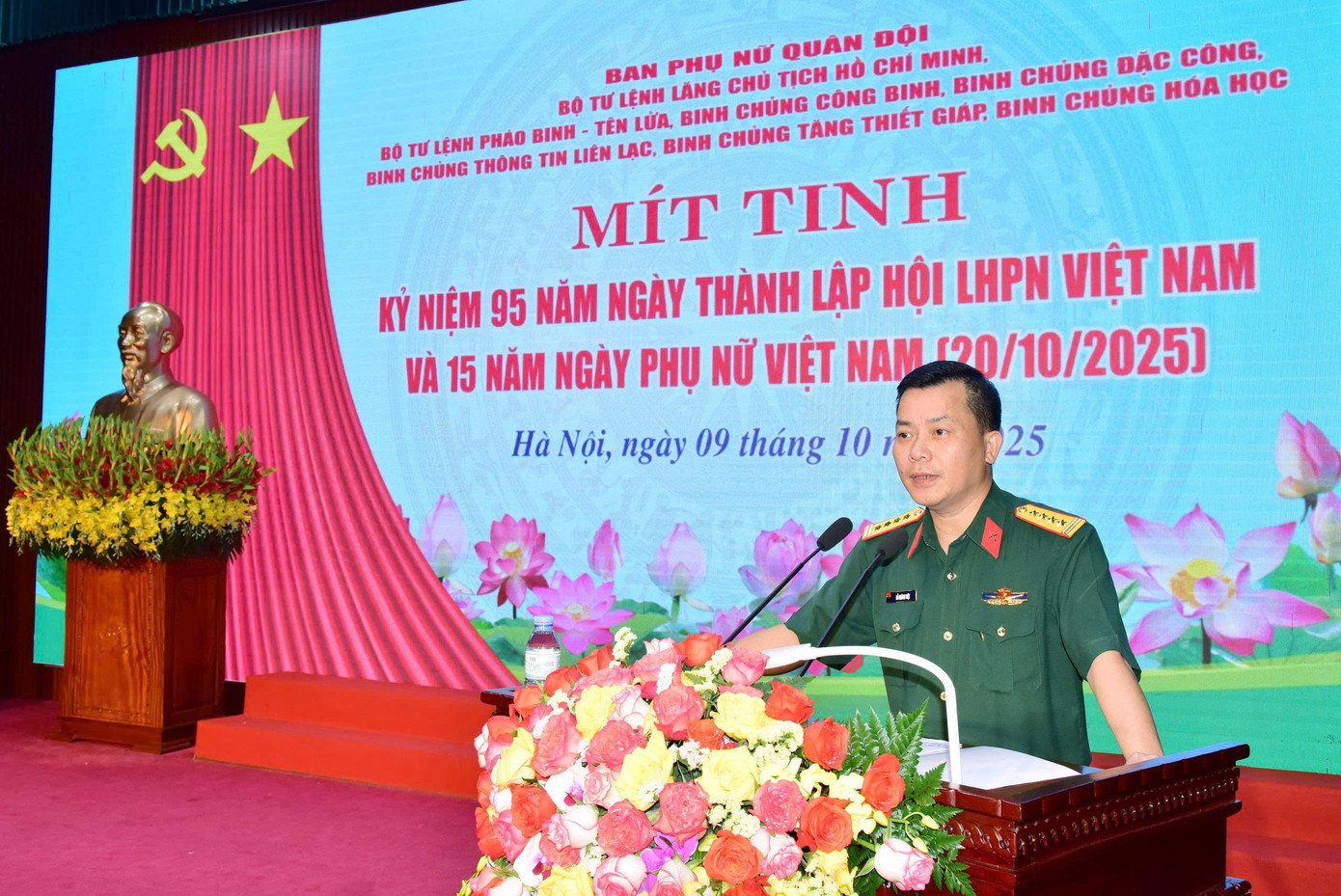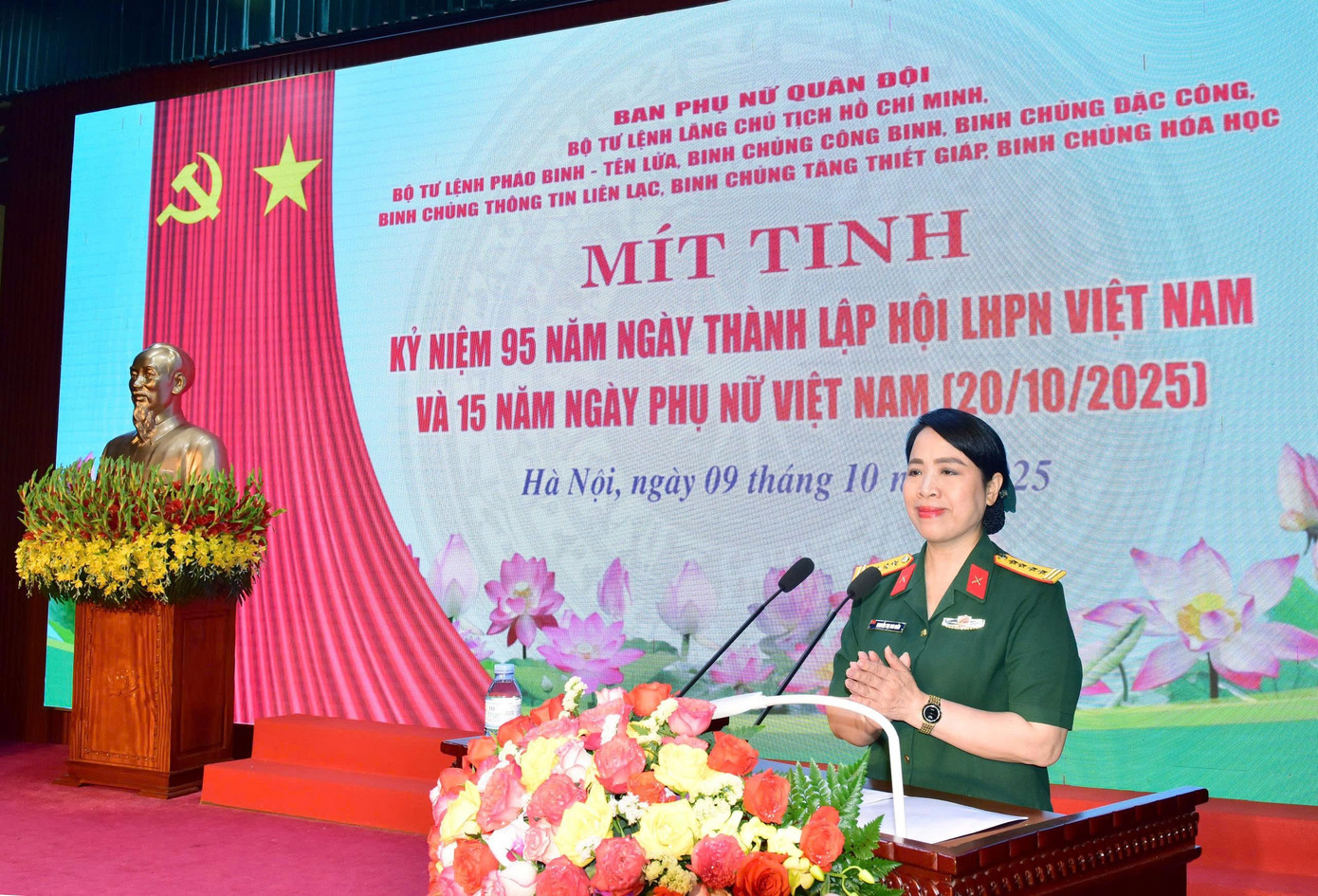 Đại tá Nguyễn Thị Thu Hiền - Trưởng Ban Phụ nữ Quân đội, phát biểu tại buổi mít tinh.