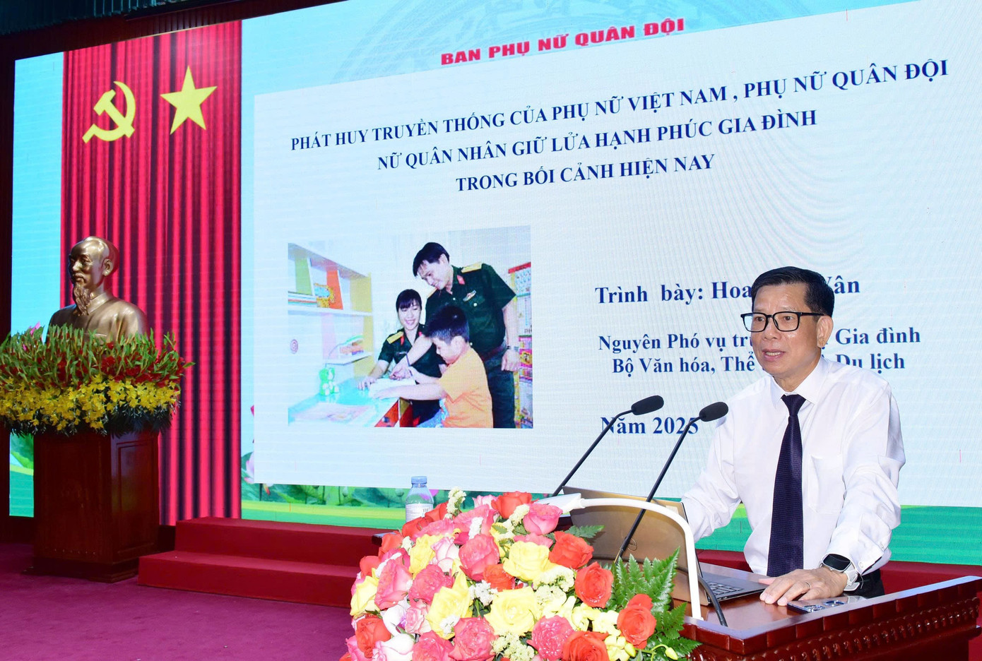 Các đại biểu đã nghe chuyên gia nói chuyện chuyên đề "Phát huy truyền thống phụ nữ Việt Nam, phụ nữ Quân đội, nữ quân nhân giữ lửa hạnh phúc gia đình trong bối cảnh hiện nay".