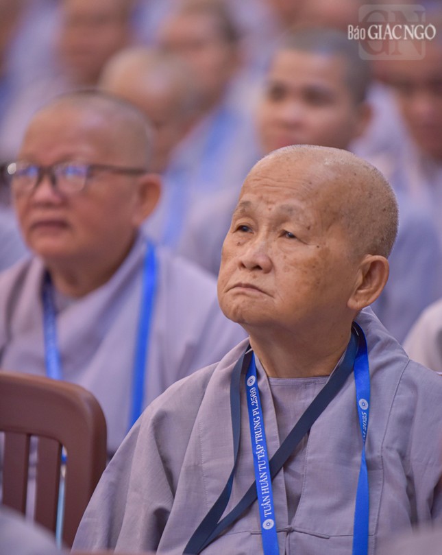 Về vấn đề hành trì, đặc biệt trong các nghi thức truyền giới, Hòa thượng cũng giải đáp những thắc mắc của đại chúng: “Trong thời đại AI, xã hội số hóa cao, tuy nhiên có những việc không thể phương tiện. Truyền giới trực tuyến không thể đáp ứng thầy trò cảm ứng. Mặt khác, về mặt cần cầu của giới tử là chưa tha thiết. Do đó, truyền giới trực tuyến cần phải thận trọng”. Vấn đề thu nhận đệ tử và hành trì oai nghi của người tu cũng được đề cập, “Luật dạy, Tỳ-kheo đủ 10 hạ, Tỳ-kheo-ni đủ 12 hạ, đồng thời đầy đủ 5 đức, đủ pháp lạp, thân khẩu ý thanh tịnh, đầy đủ kiến thức nội ngoại điển, đủ điều kiện để nuôi dạy đệ tử, có khả năng phá trừ tà kiến cho đệ tử thì mới được nhận đệ tử. Về oai nghi, chư Tổ dạy ‘hữu oai khả nghi, hữu nghi khả kính’. Oai nghi là vẻ đẹp của người tu, do đó rất quan trọng, phải chú ý giữ gìn, ứng dụng và hành trì. 100 pháp chúng học đó là thuyết về oai nghi của một Tỳ-kheo”.