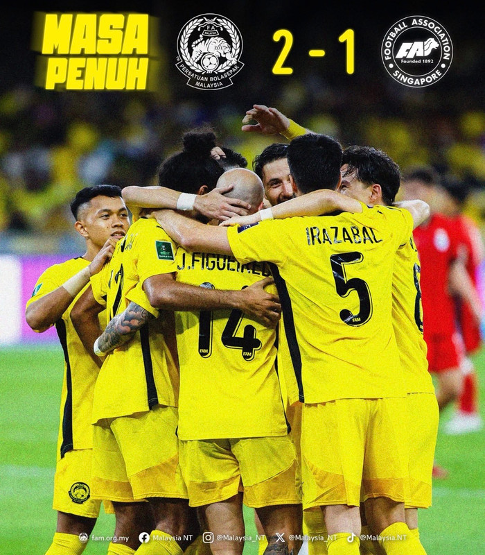 Malaysia thắng Singapore 2-1. Ảnh: Malaysia NT