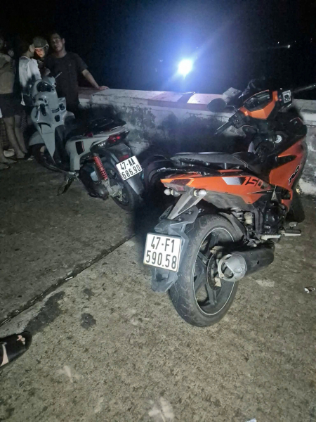 Hai chiếc xe máy cùng vật dụng được nạn nhân bỏ lại tại hiện trường.