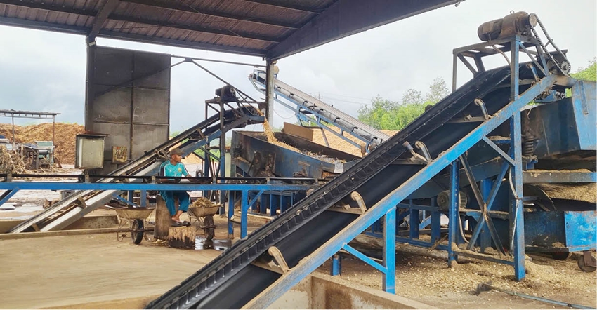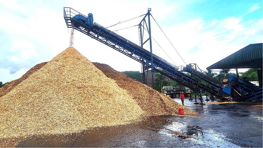 Hoạt động chế biến gỗ tại nhà máy sản xuất viên nén năng lượng ở xã Khe Tre